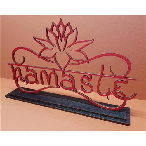 Namaste als Grußformel Grußgeste Yoga Chakra Meditation Zen als Standbild aus Holz - rot/schwarz