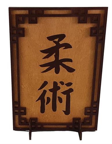 Japanisches Standbild mit Kanji 22 - Jiu Jitsu - Handarbeit Holz in Holz Birnbaum