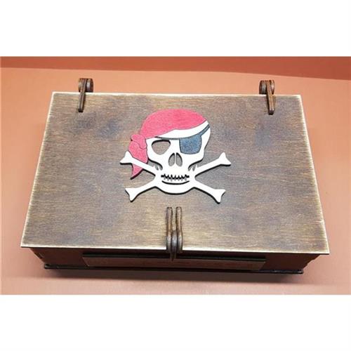 Piraten Schatzkiste für Kids aus Holz mit Goldmünzen - braun