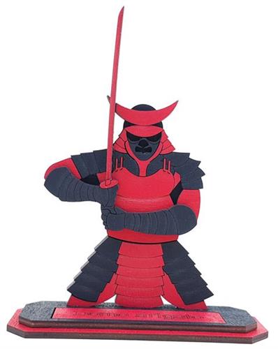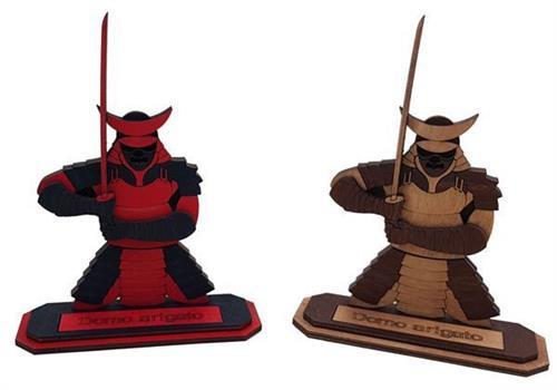 Samurai Figur Präsent - Domo Arigato -für Schüler, Trainer, Lehrer Dojo aus Holz rot/schwarz