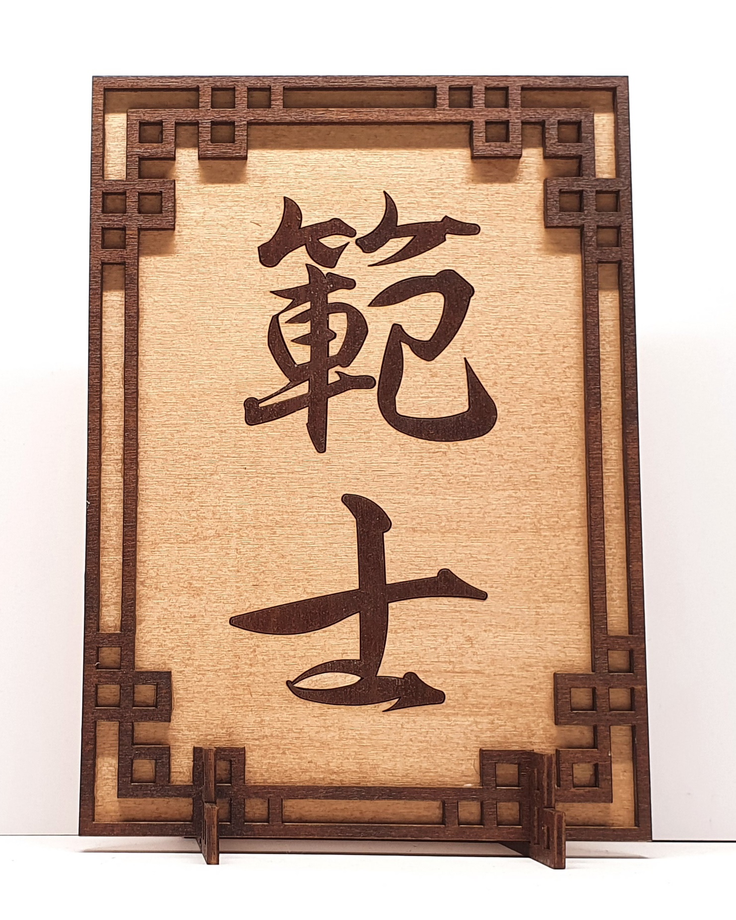 Tanno Design® Japan Stand- und Wandbild mit Kanji 01- Hanshi -  Handarbeit Holz in Holz Birnbaum / Nussbraun