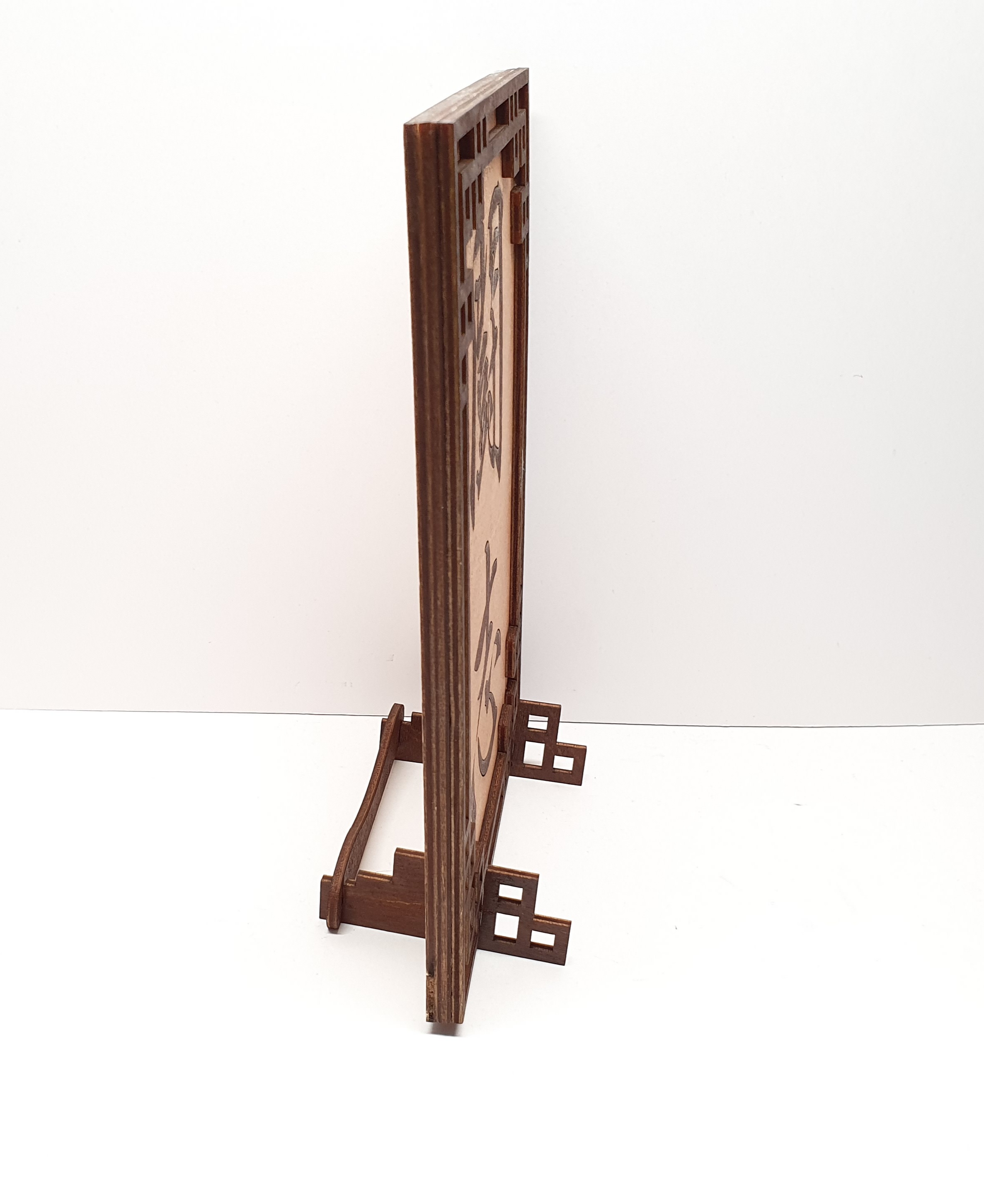 Tanno Design® Japan Stand- und Wandbild  mit Kanji 03 - Sensei -  Handarbeit Holz in Holz Birnbaum / Nussbraun