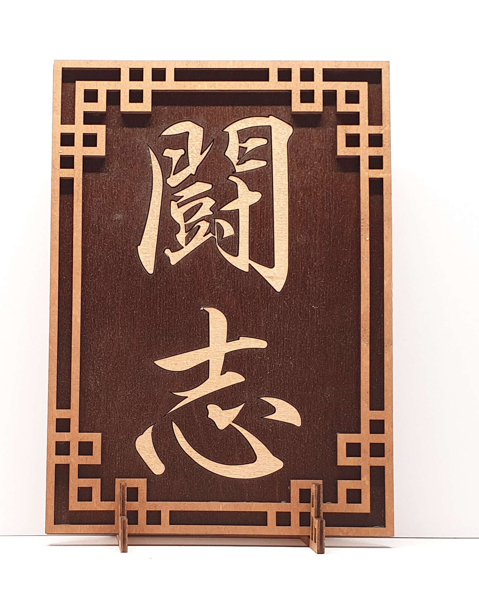 Tanno Design® Japan Stand- und Wandbild mit Kanji 23 - Kampfgeist - Handarbeit Holz in Holz Nußbraun