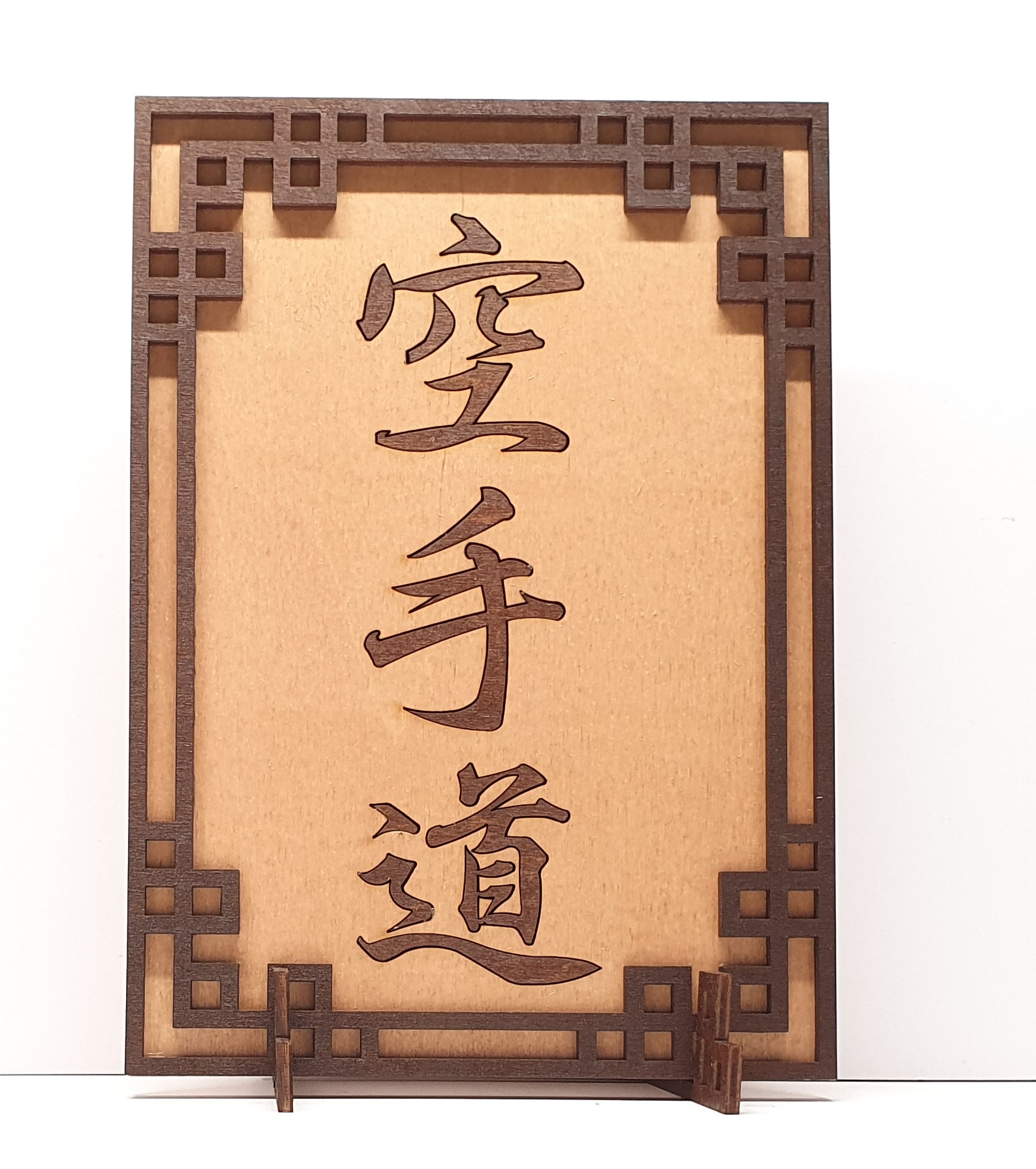 Preview: Tanno Design® Japan Stand- und Wandbild mit Kanji 24 - Karatedo - Handarbeit Holz in Holz Birnbaum