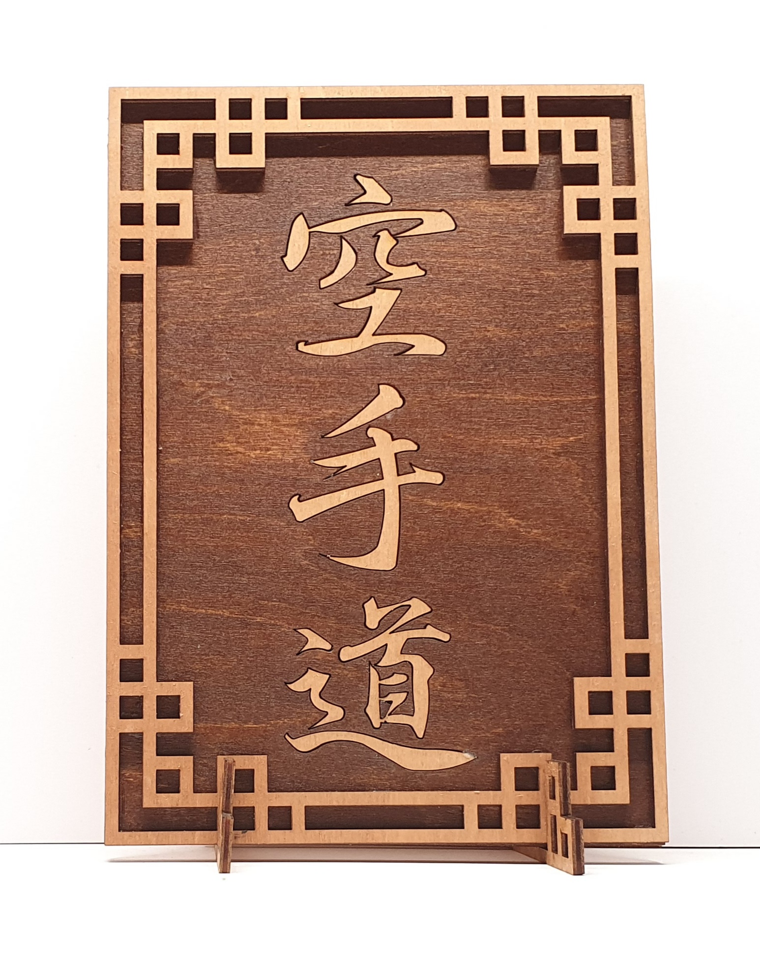 Preview: Tanno Design® Japan Stand- und Wandbild mit Kanji 24 - Karatedo - Handarbeit Holz in Holz Nußbraun