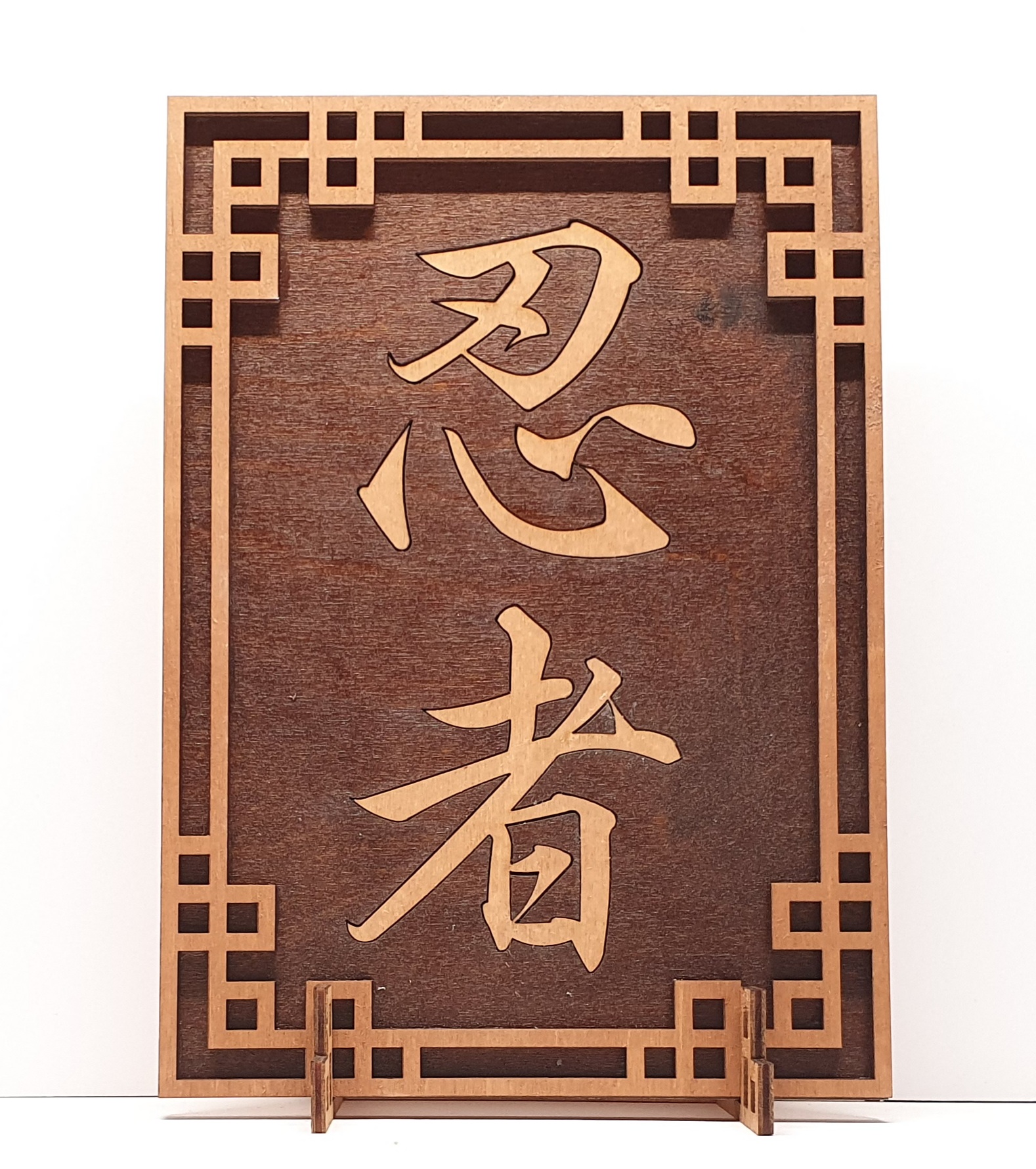 Tanno Design® Japan Stand- und Wandbild mit Kanji 29 - Ninja - Handarbeit Holz in Holz Nussbraun