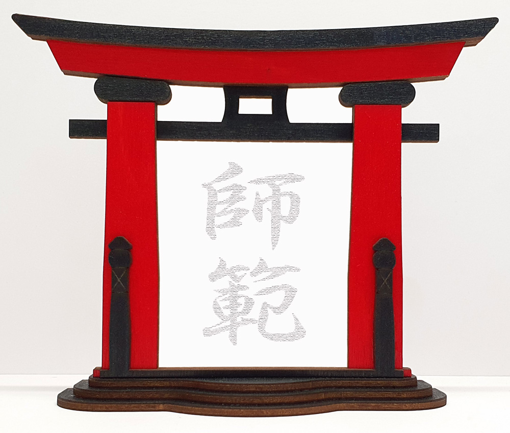 Tanno Design® Japan Torii Tor Hisa mit Kanji 02 - Shihan - japanisches Standbild rot/schwarz