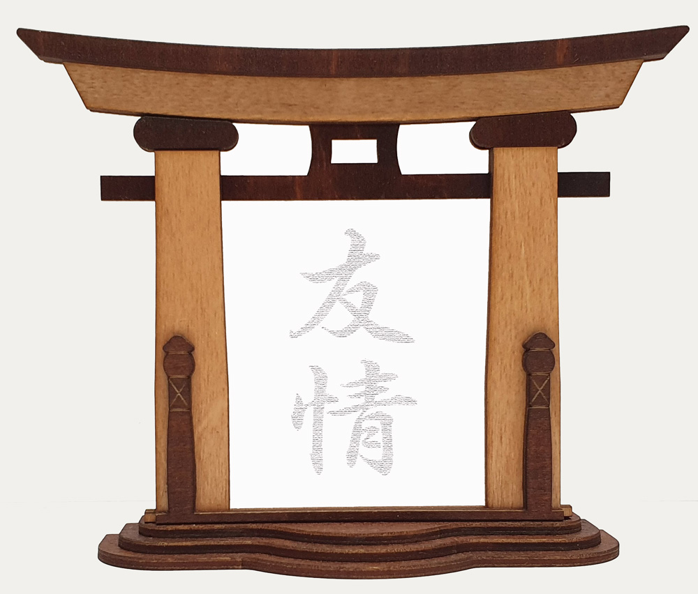 Tanno Design® Japan Torii Tor Hisa mit Kanji 13 - Freundschaft - japanisches Standbild natur/braun
