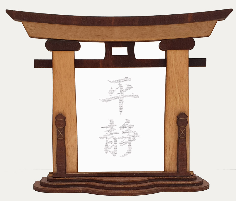 Tanno Design® Japan Torii Tor Hisa mit Kanji 17 - Gelassenheit - japanisches Standbild natur/braun