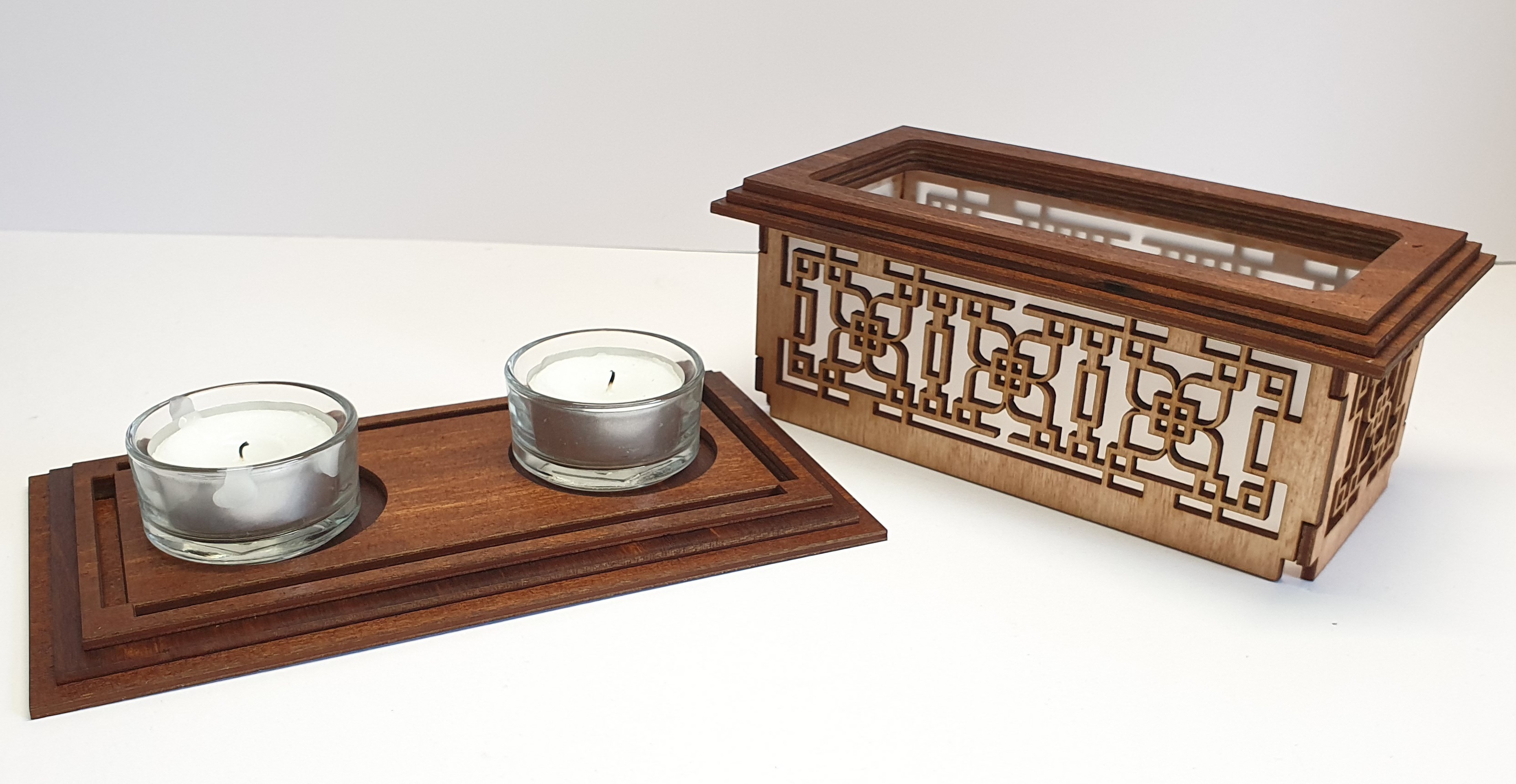 Preview: Tanno Design® Japan Kerzenhalter Akina ni mit 2-fach Teelichtfunktion birnbaum/nussbraun